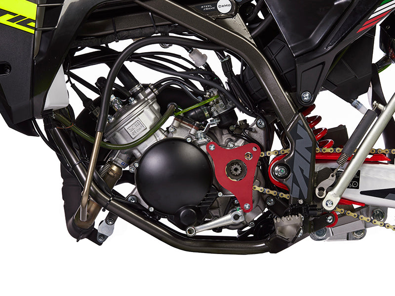 The chromoly steel perimeter frame of the Fantic XE has been further optimized in terms of stiffness, thanks to the placement of new reinforcements, all to the benefit of the ride. The Enduro 50 XE is equipped with a 41 mm Fantic upside-down fork and aluminium steering plates, spring preload and hydraulic head tube adjustment, a variable section aluminium swingarm, and a removable rear subframe. Enduro tires 90/90x21 - 120/90x18 mounted on aluminium rims. Powerful and modular Wave disc brakes, 260mm at the front, and 220mm at the rear.